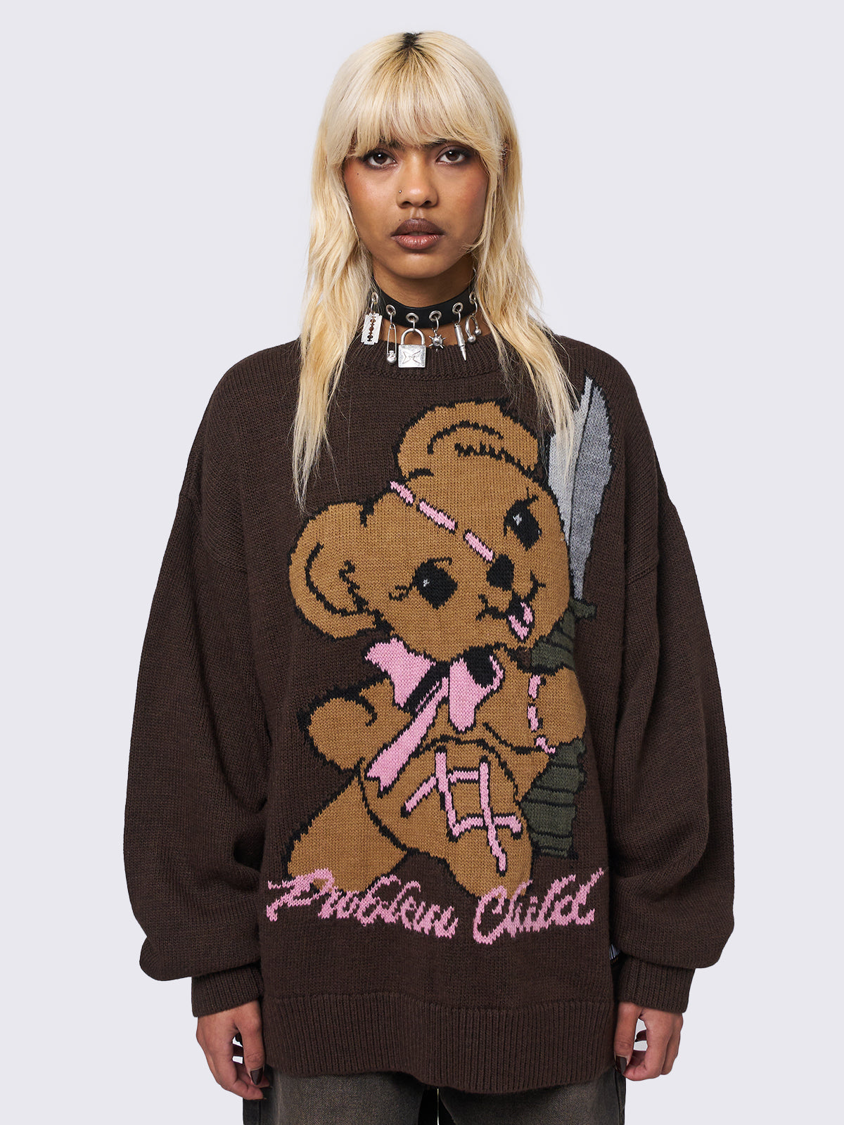 Elevate your style with our Knitwear Collection, a curated selection of cozy yet edgy women’s knitwear designed for Y2K, grunge, and alt fashion lovers. Discover everything from chunky textured jumpers and graphic cardigans to trendy knitted zip-up hoodies and shrugs. Perfect for layering, our knitted tops and zip-up cardigans blend warmth with standout style. Whether you’re into bold graphic jumpers or soft, cozy knitwear, this collection has the perfect pieces for your unique look.