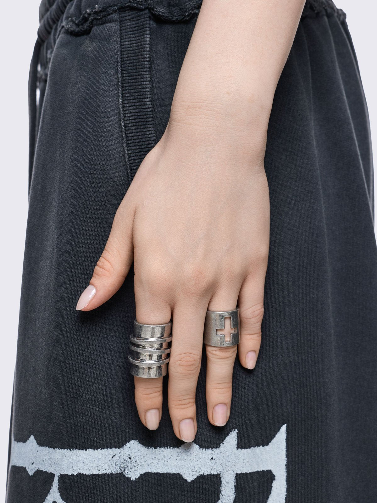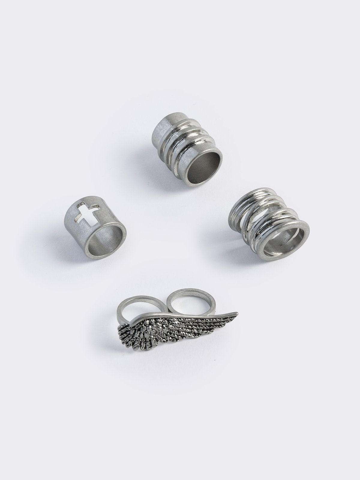 Set of 4 silver rings with wing and cross designs