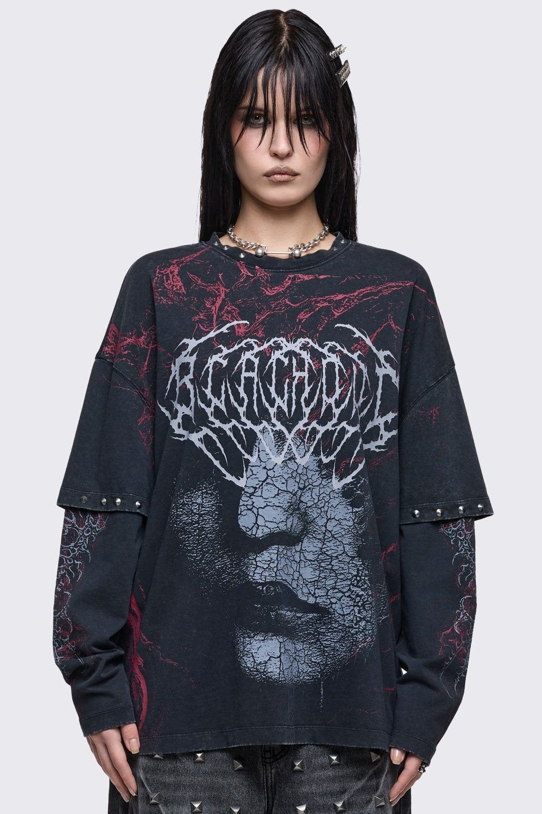 • Black washed layered long sleeve t-shirt