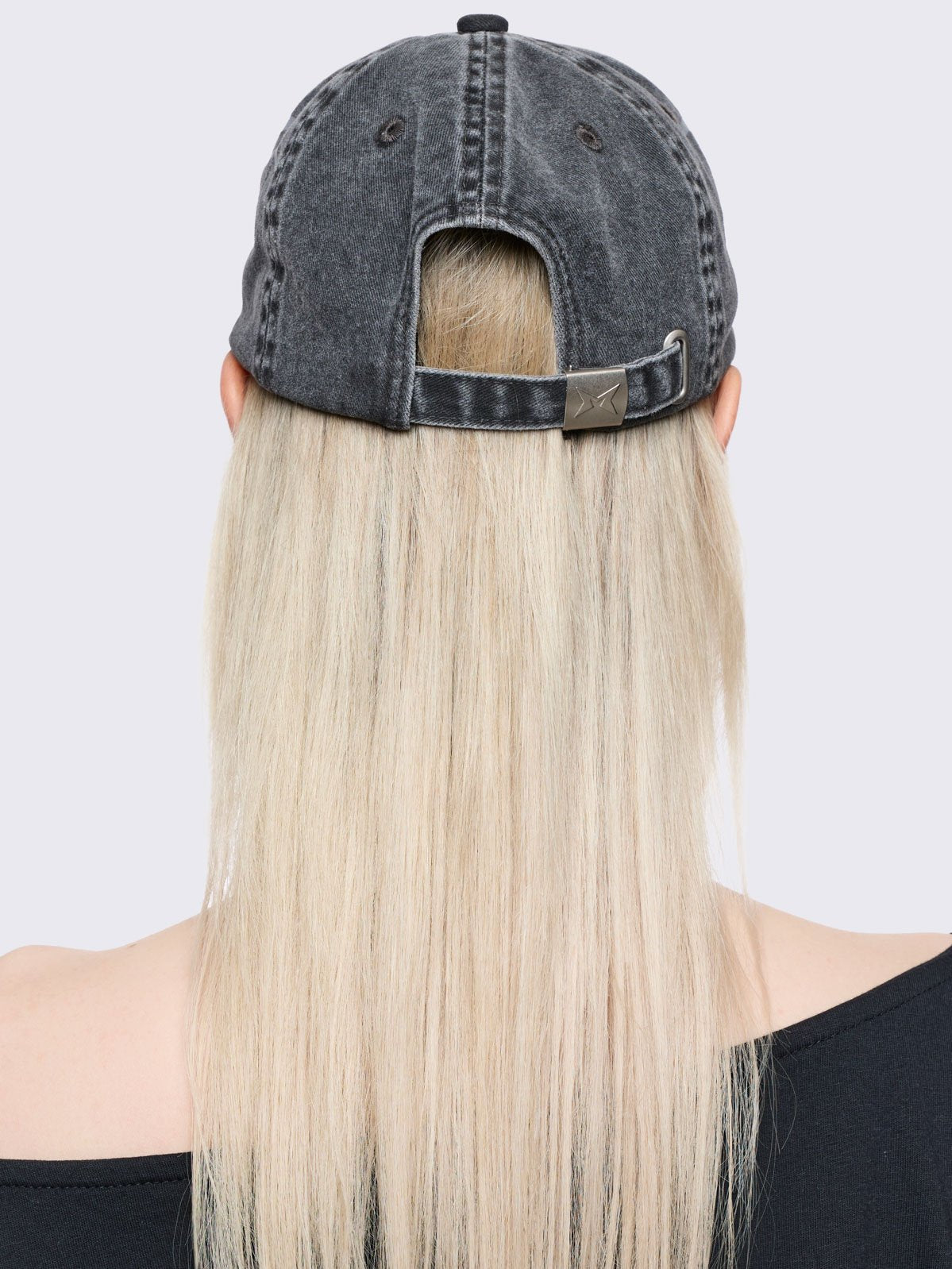 • Grey washed denim baseball cap