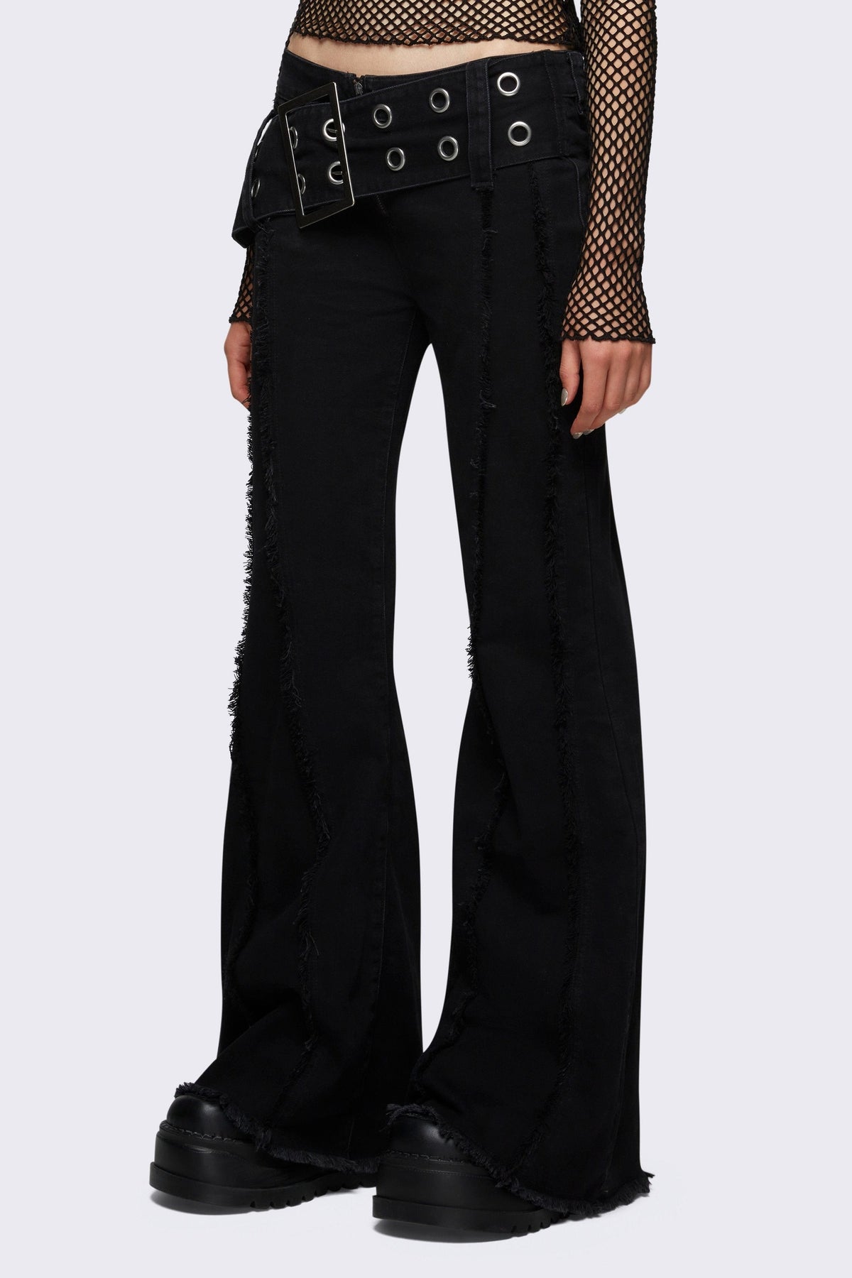 Flared jeans in black with chunky buckle belt