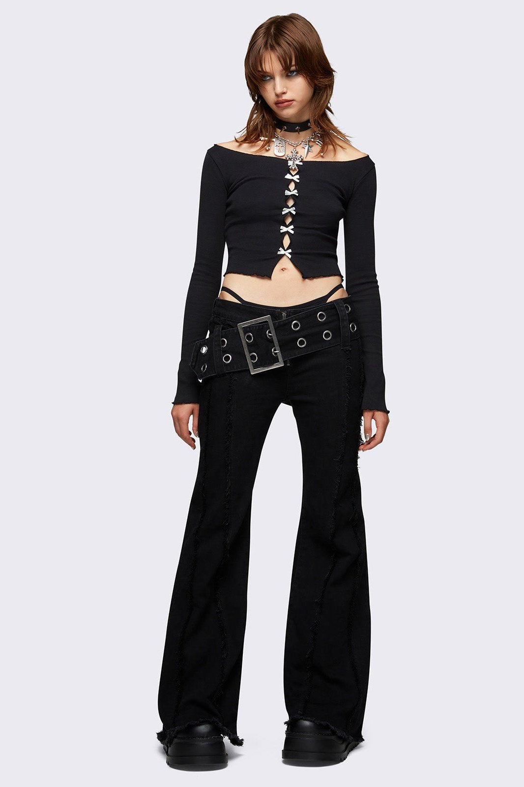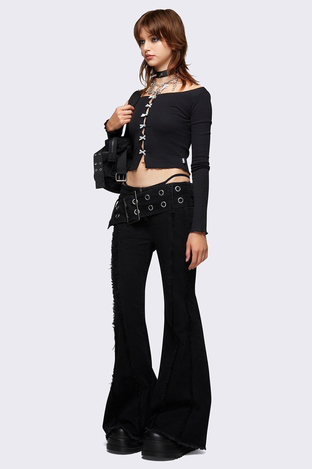 • Black flared jeans