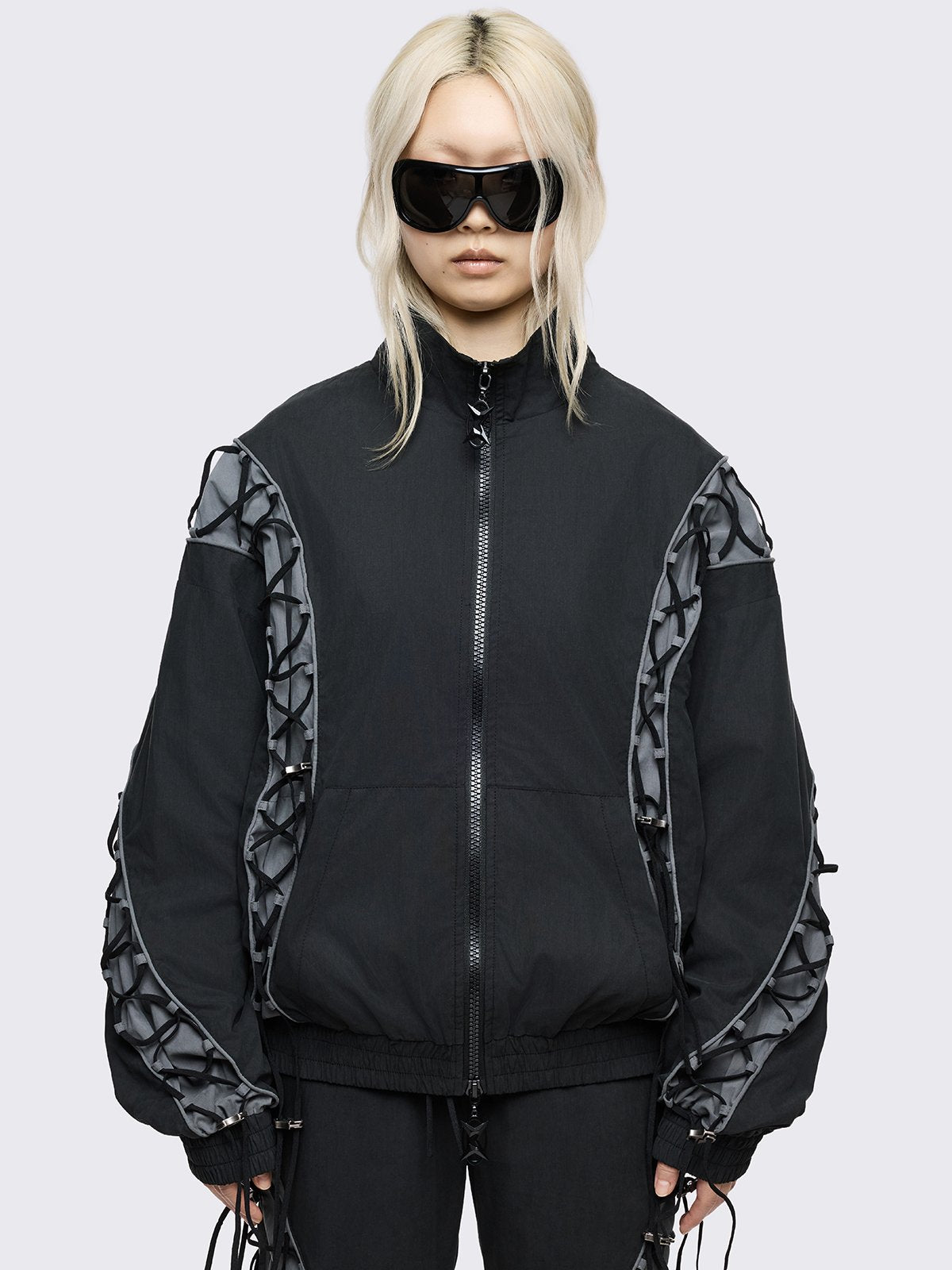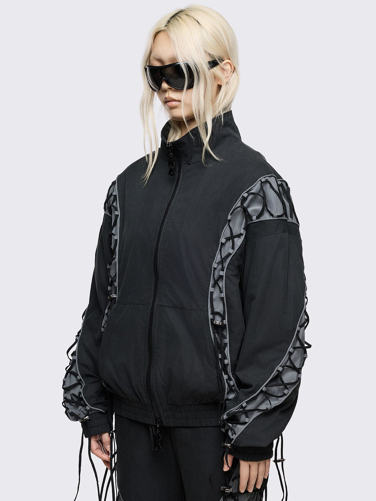 • Grey panels with lace-up
